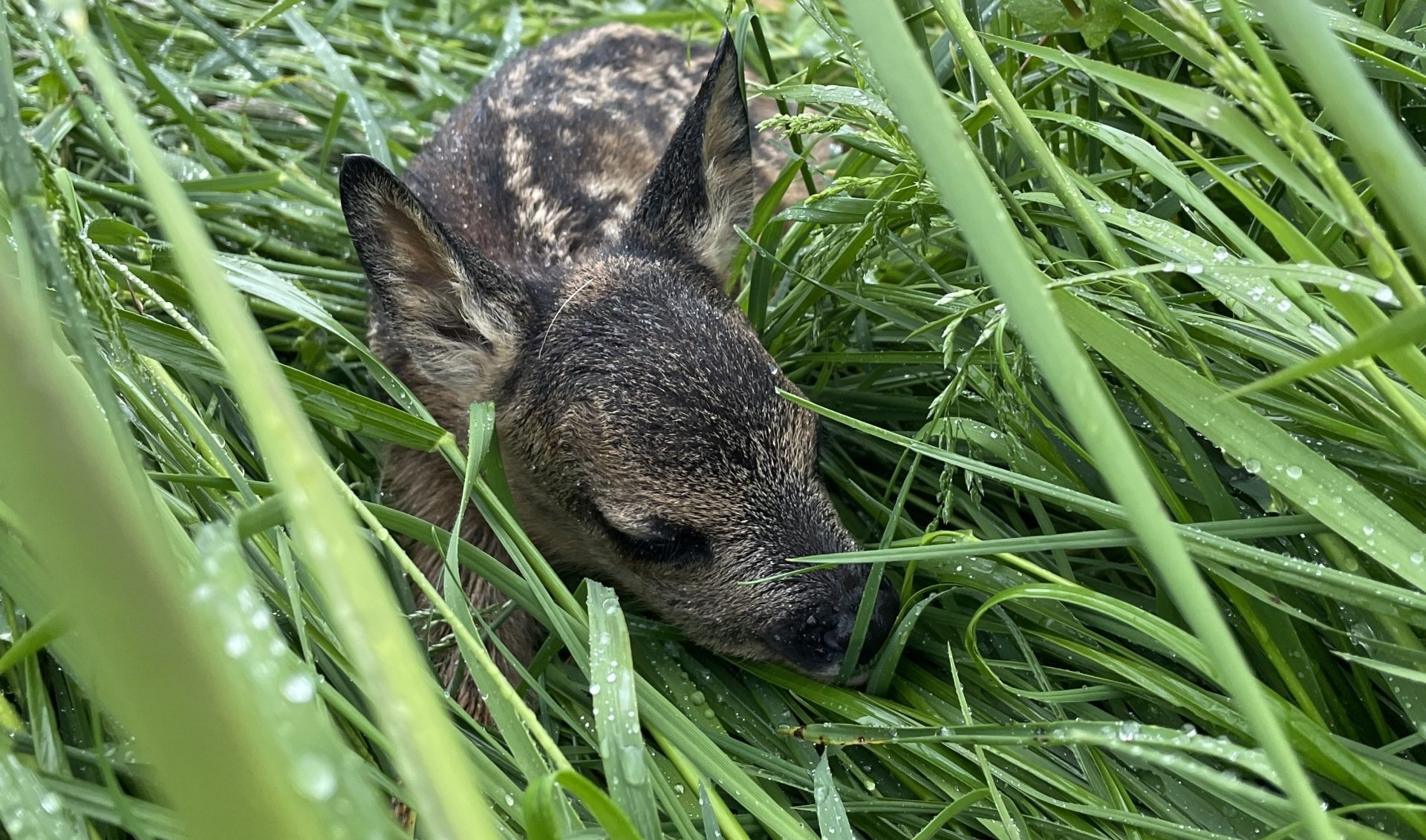 Vermeintlich gut versteckt im hohen Wiesengras, haben die Jungtiere keine Chance gegen die Mähwerke der modernen Maschinen. Rehkitze beispielsweise verführen in den ersten Lebenswochen noch nicht über einen Fluchtinstinkt, sie verharren bei Gefahr regungslos an ihrem Platz. Und erleiden dadurch häufig ihr grausames Schicksal durch ausmähen.